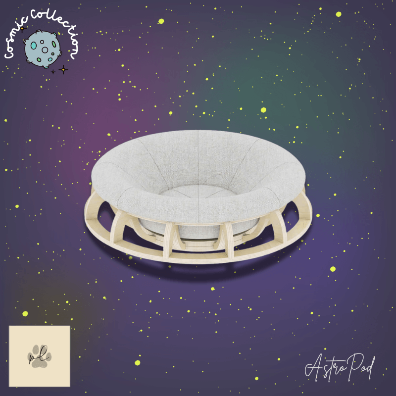 A fun and stylish lounging pod for cats and small dogs who enjoy curling up and dreaming about the stars.