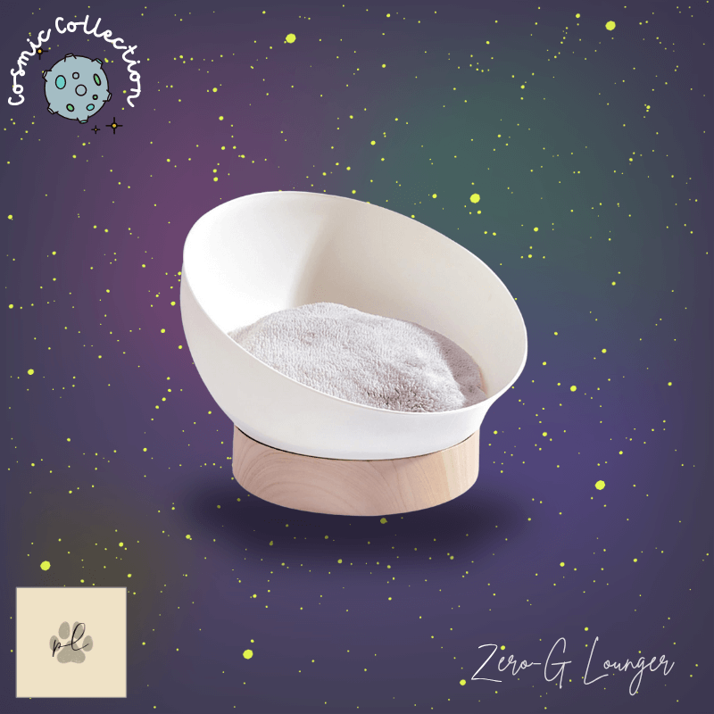 A modern and futuristic lounging bed perfect for cats, kittens, small dogs, and rabbits.