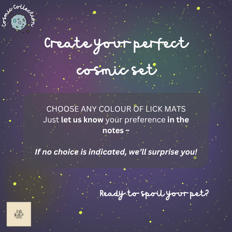 Enter your colour preference in the notes at checkout. If you don't we'll select a cosmic surprise for your pet!