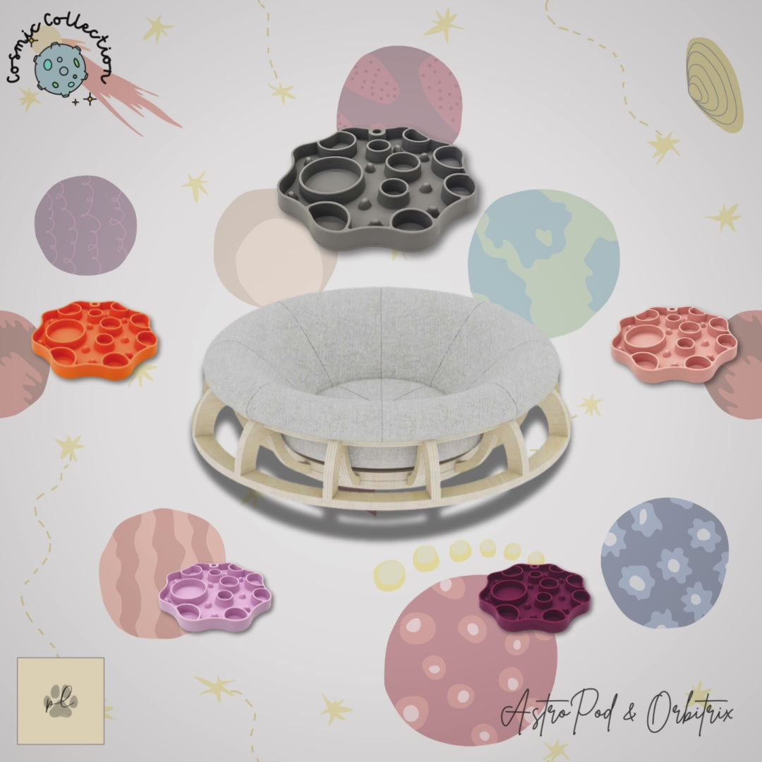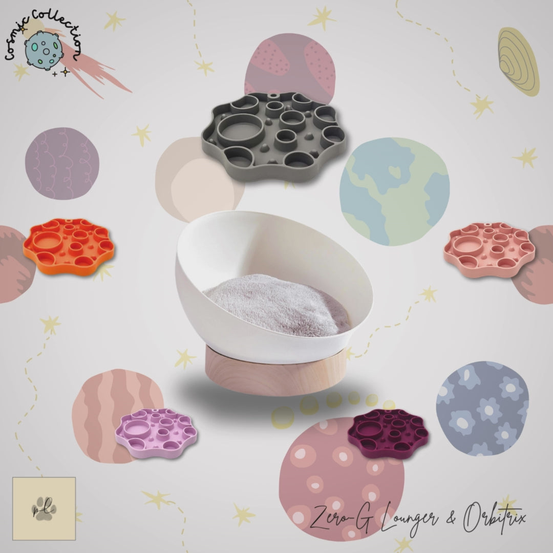 Elevate your cat’s universe with the Cosmic Comfort Bundle — a duo that blends modern design with playful enrichment. Pair one of our signature cosmic beds with an Orbitrix lick mat to create the ultimate blend of comfort and stimulation, all with a touch of PurrLuxe elegance.